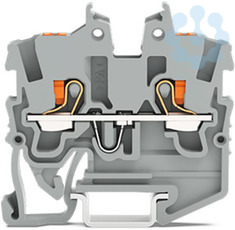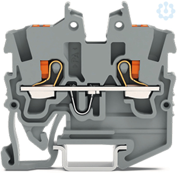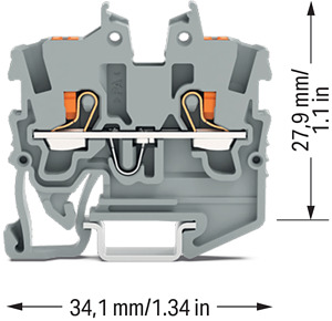 2-Leiter-Mini-Durchgangsklemme; mit Drücker; 1 mm²; mit Prüföffnung; seitliche und mittige Beschriftung; für Tragschiene 15; Push-in CAGE CLAMP®; 1,00 mm²; grau