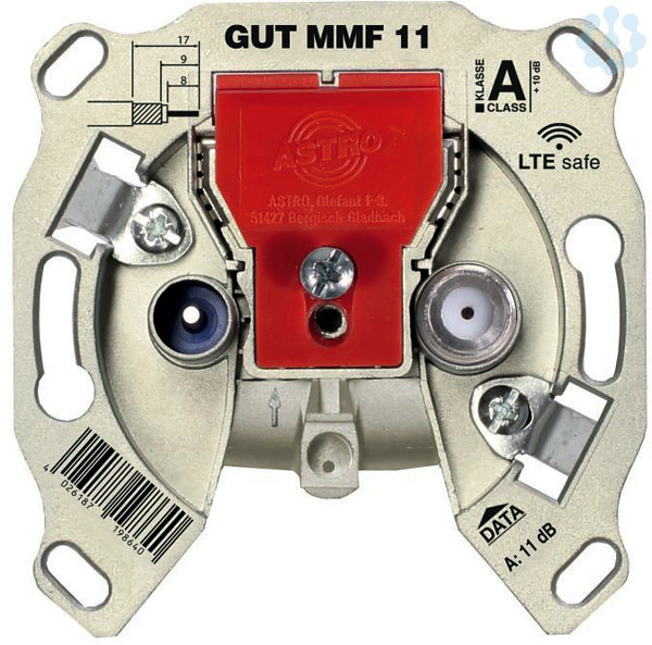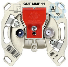 2-Loch BK-Modem-Enddose,Anschlussdämpfung ca. 11 dB, F-Buchse für Modem (5 - 1800 MHz), IEC-Stecker für TV (85 - 862 MHz)