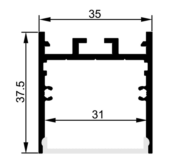 Als Pendel- oder Anbauleuchte verwendbar, in weiß (RAL9016) Innenmaß für Strips bis 30 mm Breite für die Innenanwendung Material: Aluminium eloxiert LxBxH in mm: 3.000 x 35 x 37,5 Lieferhinweis: Lieferung ohne Zubehör - bitte separat bestellen