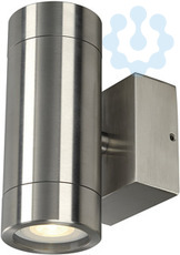 Die Wandleuchte ASTINA STEEL besteht aus Edelstahl und Glas welches die Leuchtmittel abdeckt. Dank der Position der zwei verbauten Fassungen, erzeugt die montierte Leuchte zwei gleiche, jedoch entgegengesetzte Lichtkegel (UP/DOWN). Durch die Schutzart IP44 ist sie für den Außenbereich geeignet. Der elektrische Anschluss der Leuchte erfolgt direkt an 230V Netzspannung.