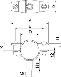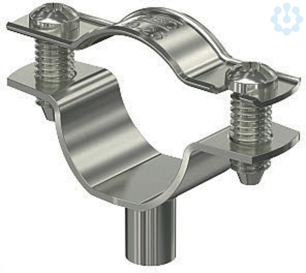 Abstandschelle zur Montage von Rohren und Kabeln an Wand, Decke und Boden. Mit selbstsicherndem Oberteil. Befestigung über Ansatz mit Innengewinde.