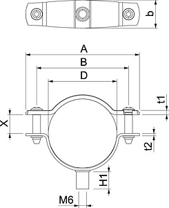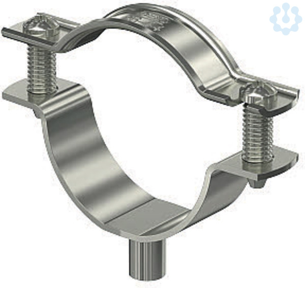 Abstandschelle zur Montage von Rohren und Kabeln an Wand, Decke und Boden. Mit selbstsicherndem Oberteil. Befestigung über Ansatz mit Innengewinde.