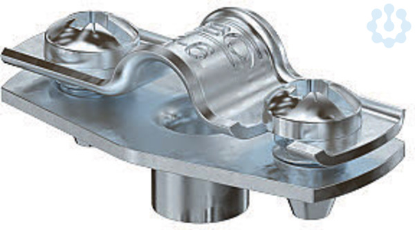 Abstandschelle zur Montage von Rohren und Kabeln an Wand, Decke und Boden. Mit selbstsicherndem Oberteil. Befestigung über Ansatz mit Innengewinde. Oberflächen G und FT ab Schellengröße 20 geeignet für Montage mit Nagelgerät oder Bolzensetzgerät.