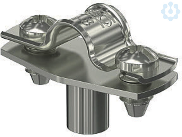 Abstandschelle zur Montage von Rohren und Kabeln an Wand, Decke und Boden. Mit selbstsicherndem Oberteil. Befestigung über Ansatz mit Innengewinde. Oberflächen G und FT ab Schellengröße 20 geeignet für Montage mit Nagelgerät oder Bolzensetzgerät.