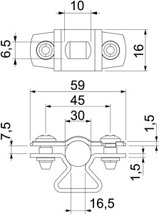 Abstandschelle zur Montage von Rohren und Kabeln an Wand, Decke und Boden. Mit selbstsicherndem Oberteil. Befestigung über Langloch.