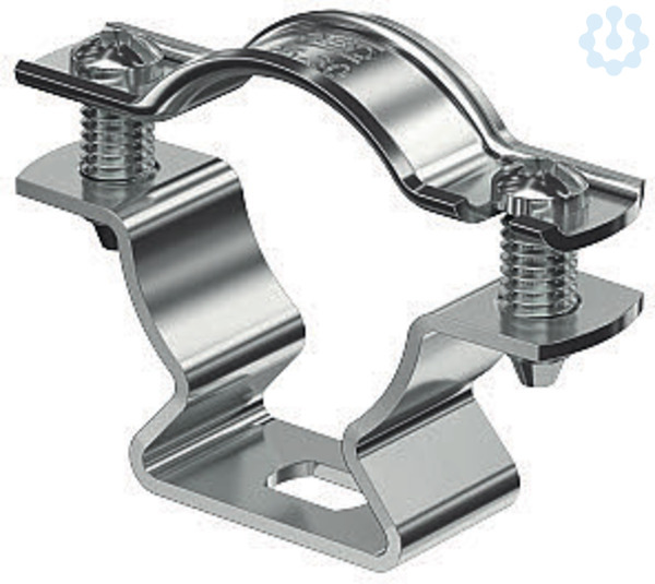 Abstandschelle zur Montage von Rohren und Kabeln an Wand, Decke und Boden. Mit selbstsicherndem Oberteil. Befestigung über Langloch. Ab der Schellengröße 20 geeignet für Montage mit Nagelgerät oder Bolzensetzgerät.
