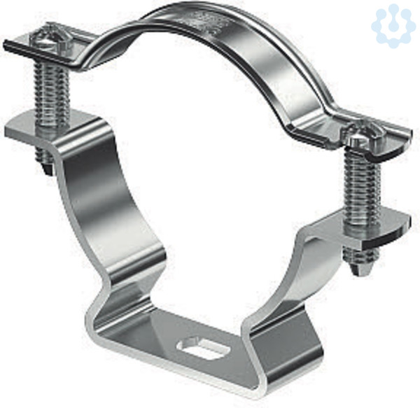 Abstandschelle zur Montage von Rohren und Kabeln an Wand, Decke und Boden. Mit selbstsicherndem Oberteil. Befestigung über Langloch. Ab der Schellengröße 20 geeignet für Montage mit Nagelgerät oder Bolzensetzgerät.