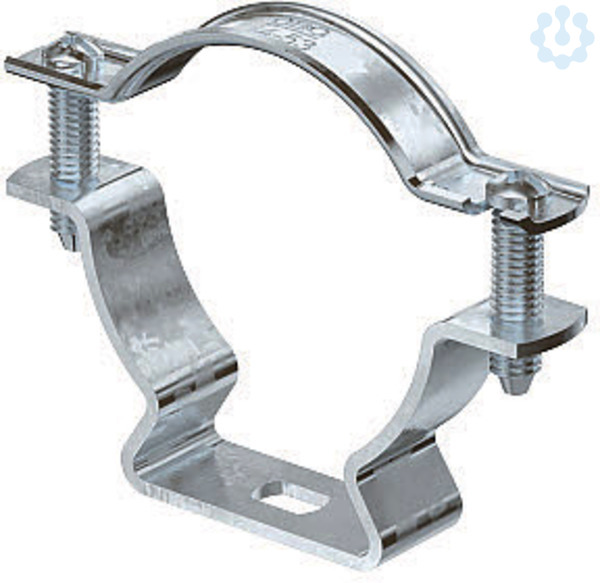 Abstandschelle zur Montage von Rohren und Kabeln an Wand, Decke und Boden. Mit selbstsicherndem Oberteil. Befestigung über Langloch.