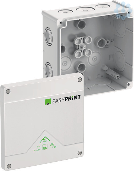 Abzweigkasten, mit individueller Bedruckung, konfigurierbar über spelsberg.de/easyprint, mit Schutzart IP66, Nennquerschnitt 10mm², zertifiziert durch VDE (DIN EN 60670-1/-22 (VDE 0606-1/-22)), DLG (Ammoniakbeständigkeit), selbstdichtende, weiche Einführungsmembranen, M20/M25/M32, Dichtbereich 8-28mm, (2 rückseitig, 10 seitlich), innenliegende Befestigungsstellen, für Standardinstallationen im Innenbereich und geschütztem Außenbereich, weiß, Ui=1000 V AC, ohne Klemmen