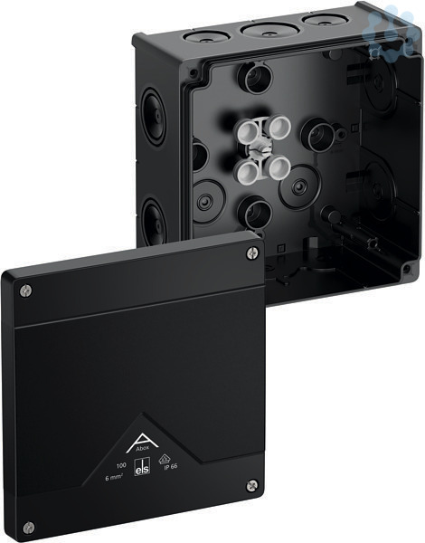 Abzweigkasten, mit Schutzart IP66, Nennquerschnitt 10mm², zertifiziert durch VDE (DIN EN 60670-1/-22 (VDE 0606-1/-22)), DLG (Ammoniakbeständigkeit), selbstdichtende, weiche Einführungsmembranen, M20/M25/M32, Dichtbereich 8-28mm, (2 rückseitig, 10 seitlich), innenliegende Befestigungsstellen, für Standardinstallationen im Innenbereich und geschütztem Außenbereich, schwarz, Ui=1000 V AC, ohne Klemmen