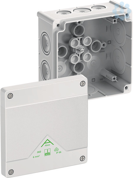 Abzweigkasten, mit Schutzart IP66, Nennquerschnitt 6mm², zertifiziert durch VDE (DIN EN 60670-1/-22 (VDE 0606-1/-22)), DLG (Ammoniakbeständigkeit), selbstdichtende, weiche Einführungsmembranen, M20/M25/M32, Dichtbereich 4-28mm, (2 rückseitig, 8 seitlich), innenliegende Befestigungsstellen, für Standardinstallationen im Innenbereich und geschütztem Außenbereich, weiß, Ui=1000 V AC, ohne Klemmen