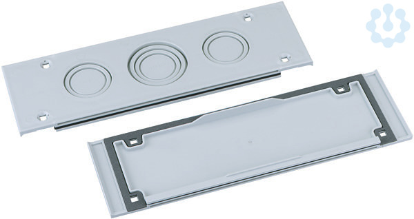 Anbauflansch, zum Anbau an 300mm breite Stirnseiten von AKL / AKi-L Leergehäusen, AKi Schalter- und Sicherungsgehäusen, AKi Steckdosenverteiler, AKi-Z / ZVi Zählergehäusen, komplett mit Befestigungsmaterial, mit Vorprägung, 2 x M32 / M40 / M50, 1 x M40 / M50 / M63