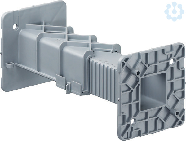 Universal-Aufstockelement 105 bis 170 mm für Druckknopfbefestigung (1261-08). Universal-Aufstockelement zur Überbrückung der Wandstärken über 105 mm und Abstützung von Gerätedosen bei Einbau auf der Gegenschalungsseite. Mit verschiedenen Größen können in 5 mm Schritten Höhen von 105 mm bis zu 300 mm (zzgl. Dosenmaß) überbrückt werden.