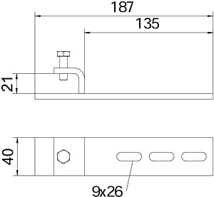 Befestigungsklemmstück für maximale Trägerstärke 20mm 187X33, A2, 1.4301, 2