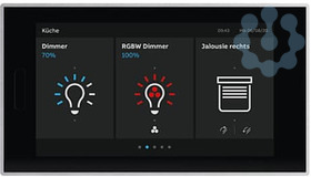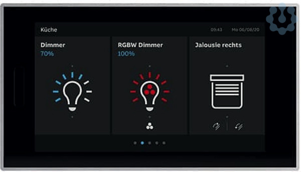 Zur Darstellung und intuitiven Bedienung von folgenden KNX-Standardfunktionen: Schalten, Wippschalter, Dimmen (4-bit und 8-bit), Schieberegler, Jalousie, RGBW Bedienelement, Raumtemperatur Bedienelement, Split Unit Bedienelement, Stufenschalter, Szenenschalter, Anzeige-Element oder Audio Bedienelement.