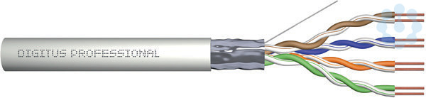 Das Digitus® Cat.5e F/UTP Verlegekabel zeichnet sich durch folgenden Kabelaufbau aus 4x2x AWG23/1 und erreicht eine Übertragunsfrequenz von bis zu 100 MHz. Der PVC Kabelmantel ist konform zu der BauPVO Euroklasse Eca. Das Kabel ist für die strukturierte Gebäudeverkabelung im sekundären und tertiären Bereich geeignet. Konform zu den Normen ISO/IEC 11801, DIN EN 50173, DIN EN 50288-2-1.