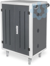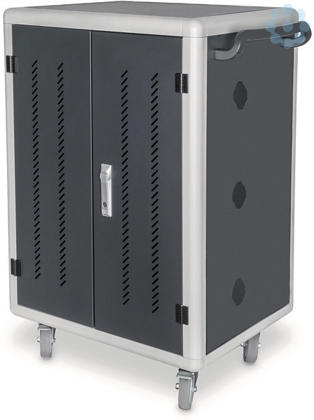 Der mobile Ladeschrank von DIGITUS® ist die ideale und kompakte Lösung zur Aufbewahrung und zum Aufladen Ihrer portablen Geräte, wie z. B. Notebooks und Tablets. Häufig werden mobile Ladeschränke in öffentlichen Einrichtungen wie z. B. Schulen genutzt, um die Geräte an einem zentralen Ort gesichert aufzubewahren und gleichzeitig laden zu können. Der Schrank beeinhaltet 3 Reihen mit jeweils 10 Ladeplätzen, von dem jeder über einen eigenen USB-Anschluss an der Vorderseite verfügt. Zusätzlich können die Geräte rückseitig mit verbauten Steckdosenleisten (3 x 10-fach Schutzkontakt) verbunden werden. Dank der großzügigen Kabeldurchführungen und Überlängenablagen ist ein optimales Kabelmanagement garantiert. Verbaute Lüfter (3 x 24 V) in Verbindung mit Lüftungsschlitzen sorgen für eine aktive Entwärmung des Schrankes.