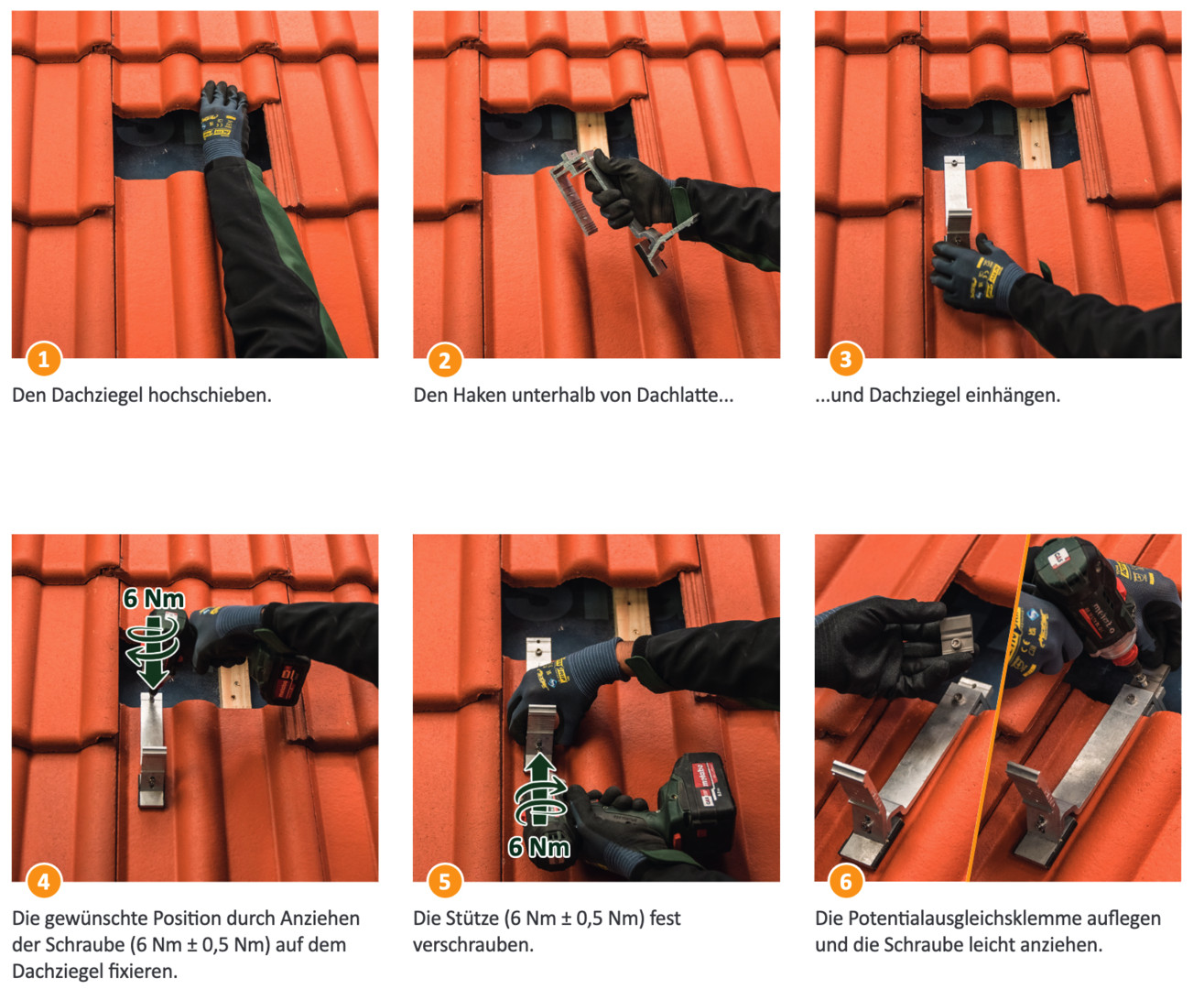 Variante 1: Haken wird unterhalb der Dachlatte und am Ziegel eingehängt und