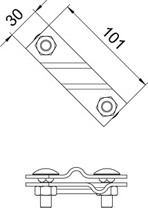 • montiert mit 2 Flachrundschrauben M10 x 30 und 2 Sechskantmuttern M10
