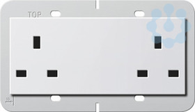 Doppelsteckdose British Standard (BS 1363-2) 13 A 250 V~ mit Shutter Reinweiß glänzend Tragring 80 x 132 mm - Mit Schraubklemmen. - Nur für Schraubbefestigung.