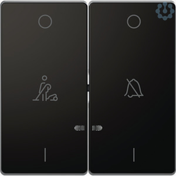 Wippe mit Aufdruck Klingel durchgestrichen/Symbol Reinigungsservice. Zu komplettieren mit Schalter und Taster, 2-fach. Material Thermoplast lackiert. Farbe Anthrazit.
