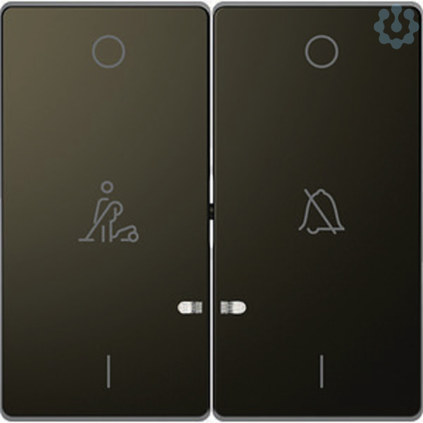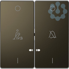 Wippe mit Aufdruck Klingel durchgestrichen/Symbol Reinigungsservice. Zu komplettieren mit Schalter und Taster, 2-fach. Material Metall. Farbe Moccametallic.