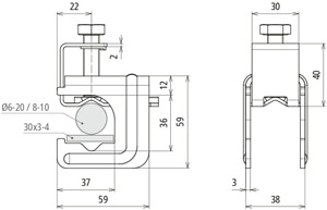 Druckbügelklemme St/blank m. Druckbügel und Klemmring f. D6-20mm o. Fl 30x3-4mm