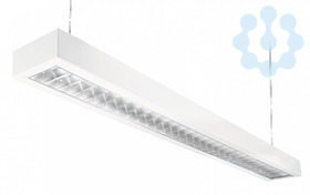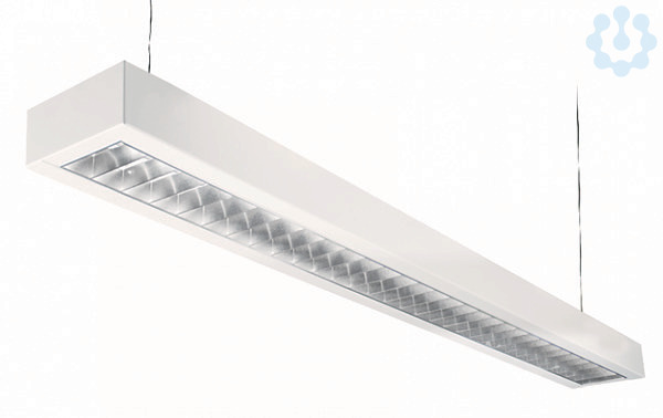Leuchte abgehängt/angebaut direkt oder direkt/ indirekt. Doppelter Parabolreflektor und Diffuser mit Möglichkeit für dimmbare Lösung (DALI/Push). Plug-and-play-Lösung für schnelle Installation.