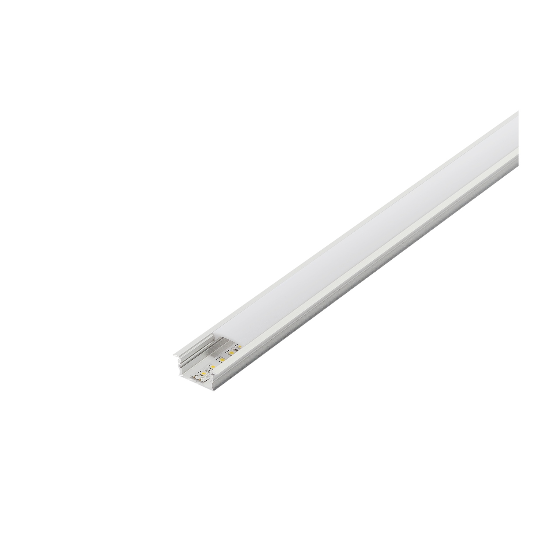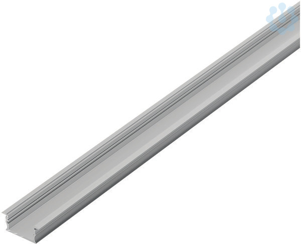 Flaches GLENOS Linear-Einbau-Profil 3314 mit Rand in 1- und 2 m Länge exklusive Abdeckung zur Montage von LED Strips bis 21 mm Breite. Das Profil ist in weiß matt und aluminium eloxiert erhältlich.
