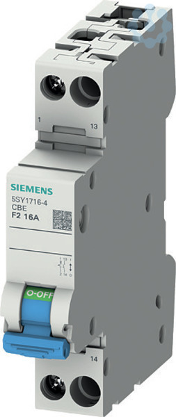 Geraeteschutzschalter1polig mit Hilfsschalter Schliesser Charakteristik F2 1A AC 230V 50/60Hz DC 60V Icn 3kA AC nach IEC 60934