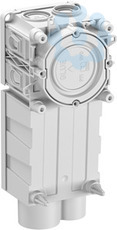 Geräte-Verbindungsdose, speziell für die liegende Werksfertigung, 1-teilig, Durchmesser 60mm Ø, 4 Schraubdome mit Schraubabstand 60mm, kombinierbar, geeignet auch für Gegenschalung, kombinierbar im Normabstand 71mm, mit Schutzart IP30, Bemessungsisolationsspannung: 400V AC, zertifiziert durch VDE (DIN EN 60670-1/-22 (VDE 0606-1/-22)), halogenfrei, mit zusätzlich erweitertem Anschlussraum für Installation von RuK- und IuK-Komponenten gemäß Empfehlung der DIN 18015-1, so wie zur Aufnahme von Aktoren/Sensoren/Devices im Bereich Smart Home/IoT, kombinierbar auch mit der P71 GVD Type, zusätzlich Krallenbefestigung möglich, feste Rohreinführungen für je ein M25 und M32 Rohr, 4 weitere Einführungen mittels optionaler Rohradapter RA von M16 bis M25, Klebebefestigung, Integrierte Rohradapter und zusätzliche Rohradapter mit Easy-Cut-Membran, Dichtbereich M16-M32, stützholmfähig