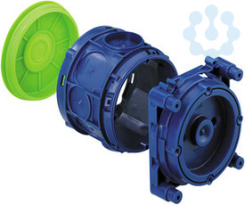 Geräte-Verbindungsdose, auch in Fertigteilwerken, 4 Schraubdome mit Schraubabstand 60mm, kombinierbar im Normabstand 71mm, vollisolierter Leitungsübergang, geeignet für alle Schalungsarten und Gegenschalung, mit Schutzart IP30, Bemessungsisolationsspannung: 400V AC, zertifiziert durch VDE (DIN EN 60670-1/-22 (VDE 0606-1/-22)), halogenfrei, 3-teilig, Magnet- oder Nagelbefestigung, Membran zur Lochung, Dichtbereich M16-M25, stützholmfähig