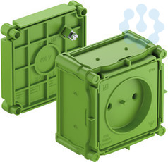 Geräteeinbaudose, grün, Schutzart IP30, geeignet für Betonbau, Bemessungsisolationsspannung 400V AC, halogenfrei