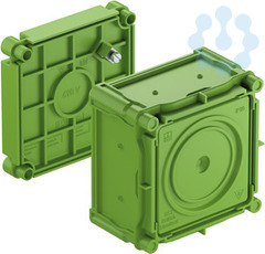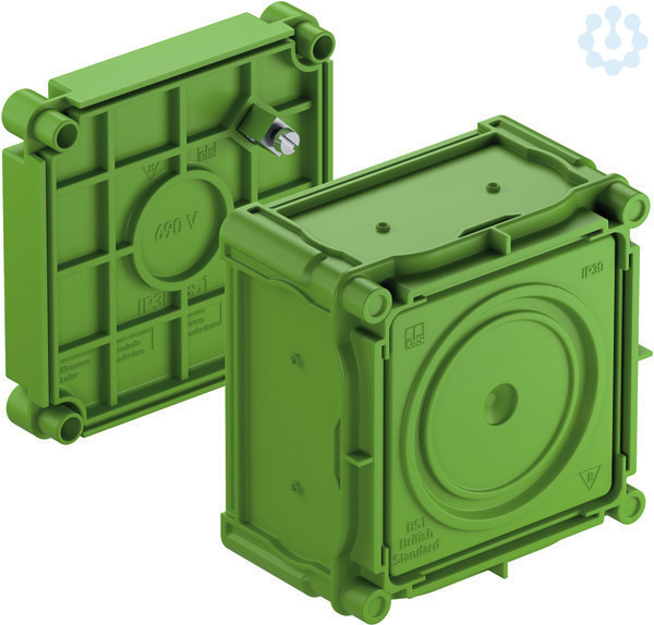 Geräteeinbaudose, grün, Schutzart IP30, geeignet für Betonbau, Bemessungsisolationsspannung 400V AC, halogenfrei