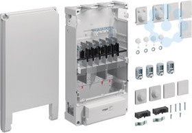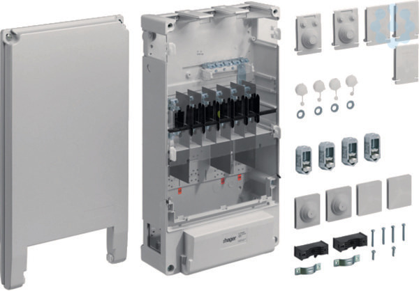 Hausanschlusskasten, KH1, Baureihe K12, 2x3NH00, Durchschleif-Ausführung.Hausanschlusskasten nach DIN 43627 und DIN VDE 0660-505, Schutzart IP 54, Gehäuse aus glasfaserverstärktes Polyester. Plombierbares Gehäuse mit Kabel-Einführungen, Gehäusedeckel in 15 Grad-Stellung aushängbar. Als Einbauten dient ein NH-Sicherungsunterteil mit Berührungsschutzabdeckung.
