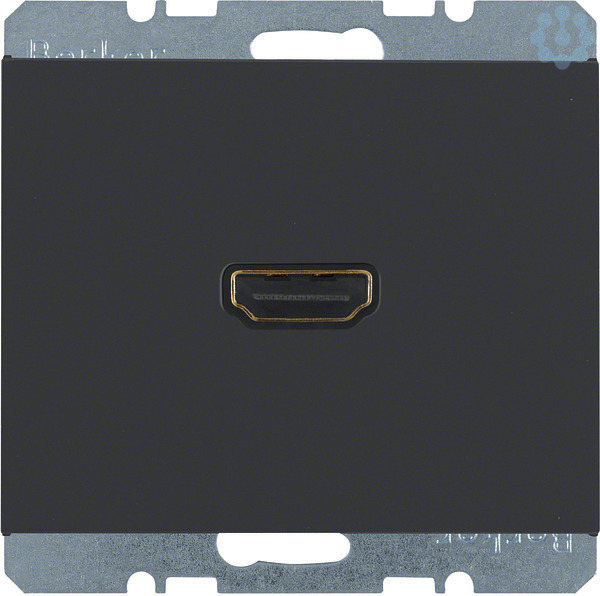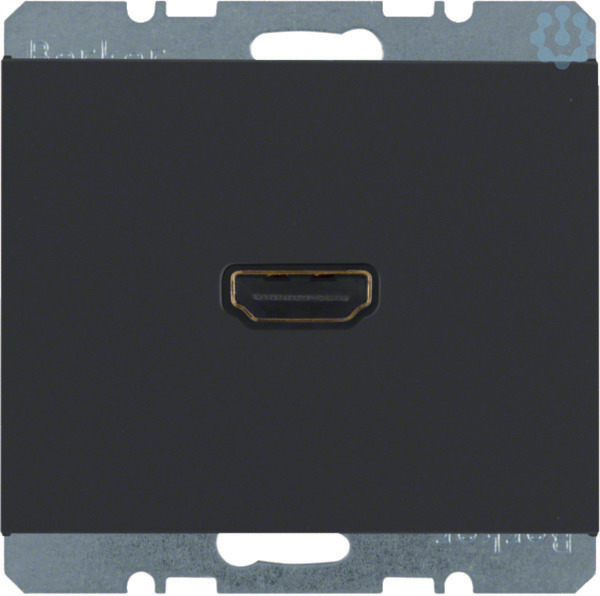 High Definition Steckdose mit 90°-Steckanschluss K.1 anthrazit, matt.High Definition Steckdose mit 90°-Steckanschluss geeignet für den Anschluss digitaler High-End Geräte der Unterhaltungselektronik zur Übertragung hochaufgelöster Audio- und Videosignale, mit HDMI Doppelbuchse (vorder- und rückseitig) Typ A, unterstützt HDMI Technologie (V 1.3 mit Deep Color), 90° gewinkelte, rückseitige Buchse zur Vermeidung von Biegeradien (Qualitätsverlusten in der Signalübertragung) im Anschluss-Kabel.