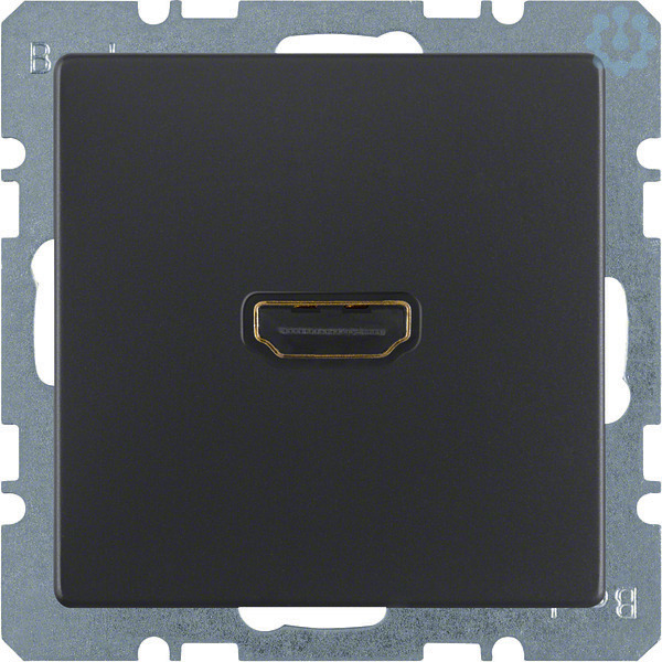 High Definition Steckdose mit 90°-Steckanschluss Q.x anthrazit, samt.High Definition Steckdose mit 90°-Steckanschluss geeignet für den Anschluss digitaler High-End Geräte der Unterhaltungselektronik zur Übertragung hochaufgelöster Audio- und Videosignale, mit HDMI Doppelbuchse (vorder- und rückseitig) Typ A, unterstützt HDMI Technologie (V 1.3 mit Deep Color), 90° gewinkelte, rückseitige Buchse zur Vermeidung von Biegeradien (Qualitätsverlusten in der Signalübertragung) im Anschluss-Kabel.