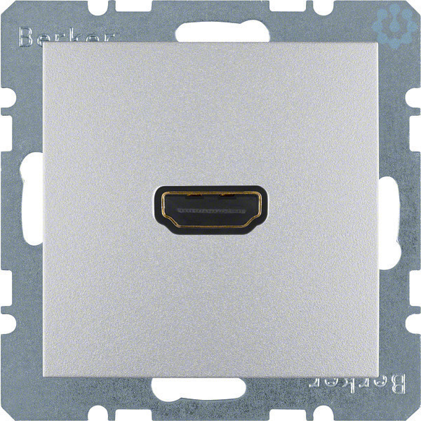 High Definition Steckdose mit 90°-Steckanschluss S.1/B.3/B.7 alu, matt.High Definition Steckdose mit 90°-Steckanschluss geeignet für den Anschluss digitaler High-End Geräte der Unterhaltungselektronik zur Übertragung hochaufgelöster Audio- und Videosignale, mit HDMI Doppelbuchse (vorder- und rückseitig) Typ A, unterstützt HDMI Technologie (V 1.3 mit Deep Color), 90° gewinkelte, rückseitige Buchse zur Vermeidung von Biegeradien (Qualitätsverlusten in der Signalübertragung) im Anschluss-Kabel.