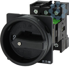 Hauptschalter, Sortiment: Hauptschalter, Wartungsschalter, Typkenner: P1, STOPP-Funktion: HALT-Funktion, mit schwarzem Drehgriff und Sperrkranz, Information zum Lieferumfang: Hilfsschalterkontakt oder Neutralleiter nachrüstbar., 3-polig, Abschließbarkeit: abschließbar in 0-Stellung, Schutzart: Front IP65, Bauform: Zwischenbau, Bemessungsbetriebsleistung AC-23A, 50 - 60 Hz 400 V: P = 15 kW, Bemessungsdauerstrom: Iu = 32 A, Normen und Bestimmungen: IEC/EN 60947, VDE 0660, IEC/EN 60204, CSA, UL, Lasttrennschalter nach IEC/EN 60947-3, NEMA12