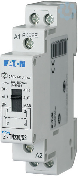 Installationsrelais mit Handbetätigung, das Installationrelais ist zum Schalten von 1phasigen oder 3phasigen Verbrauchern bis 20A geeignet, durch die universellen Einsatzmöglichkeiten in der Gebäudetechnik und Hausinstallation können folgende Anwendungen und Steuerungen realisiert werden: Schalten von Beleuchtungsanlagen und Elektro-Heizungen, Schalten von Belüftungen und Klimanlagen, Ventilatoren, Schalten von Wärmepumpen, Schalten von elektrisch gesteuerten Rolltoren und Jalousien, Schalten von Glühlampen und Gasentladungslampen, die Baureihe der Installationrelais Z-R./ erfüllt die Anforderungen der EN/IEC 60947 und EN/IEC 1095, Handbetätigung zu Prüfzwecken, Schaltkontakte mit sicherer Trennung AC1 nach EN 60947-4-1 (Z-R, Z-RK), Option einer optischen Anzeige des Betriebszustandes mittels LED, frontseitige Schaltstellungsanzeige durch Handbetätigungstaste, alle Klemmen - Spule und Kontakte - mit Klemmhilfe. Kein “Hinterstecken” der Anschlussdrähte möglich, Hauptkontakte mit Standard-Stiftverschienung verschienbar, Verwendung von schwer entflammbaren Materialien, sowie chlor- und halogenfreien Kunststoffen, Berührungssicherheit nach VBG4, Vorteile:, wahlweise 3 Ausführungsvarianten (Z-R, Z-RK, Z-RE), schaltgeräuscharm und brummfrei, einfacher Anschluss durch großzügig dimmensionierten Klemmen im offenen Zustand geliefert, Einfach-Schnappbefestigung für die 35mm Hutprofilschiene, hohe Flexibilität durch verschiedene Kontaktkonfigurationen, leichte Zugänglichkeit zum Anschluss der Spulenversorgung