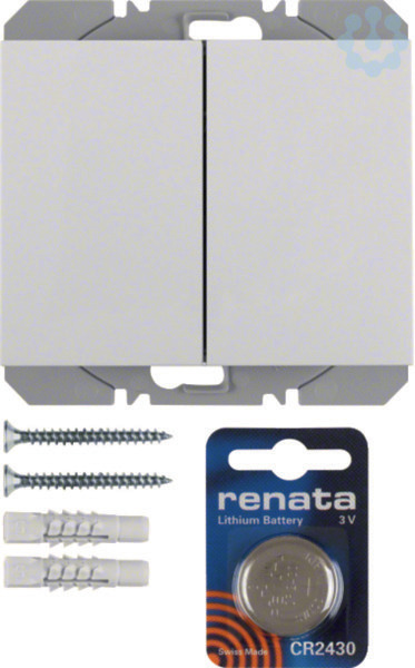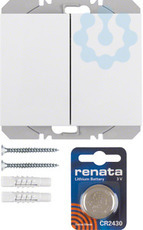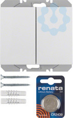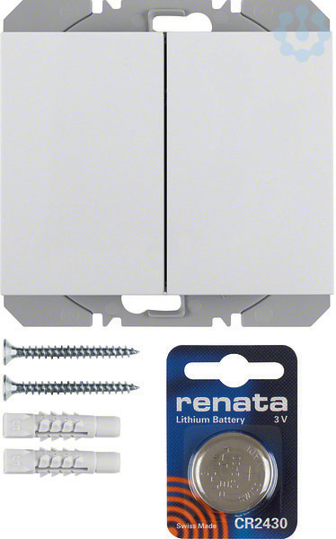 KNX-Funk Wandsender 2fach flach quicklink K.1 polarweiß, glänzend.KNX-Funk Wandsender 2fach flach quicklink für die Funk Fernbedienung zugeordneter KNX-Funk Empfänger. Flache Aufputz-Montage und Kombinationserweiterung mit einer Lithium Knopf-Batterie 3 V Typ CR 2430. Integration via KNX-Funk Medienkoppler AP ins KNX-TP-System. Werkzeuglose quicklink-Konfiguration über Tasten und LED-Anzeige, obere und untere Bedienfläche frei konfigurierbar, Bedienflächen als Ein- oder Zweiflächenbedienung konfigurierbar, mit Sendestatus- und Batteriestatus-LED rot/grün/orange, mit Konfigurations-LED, Resetfunktion (auf Werkseinstellung).