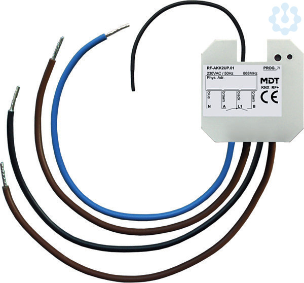 KNX RF+ Funk Schaltaktor 2-fach, UP, 10 A, 230 V AC. Ausführung mit monostabilen Relais. Strom max. 10 A bei ohmscher Last, 10 A bei 14 µF / 2 EVG. Zum Einbau in die Schalterdose. Zum Betrieb innerhalb der EU, 868 MHz. KNX RF+ Protokoll im System Mode. Inbetriebnahme ab ETS 5. Schließer- und Öffnerbetrieb. Zeitfunktionen (Ein-/Ausschaltverzögerung, Treppenlichtfunktion). Status Rückmeldungen für alle Kanäle (aktiv/passiv). Logische Verknüpfungen. 8 Szenen je Kanal. Zentralfunktionen und Sperrobjekte zur Zwangsführung. Anbindung über MDT KNX RF+ Funk Linienkoppler. Zur Modernisierung ohne Verlegung von KNX-Buskabeln. Spannungsversorgung 230 V AC. Einbau in Schalterdose. Abmessungen (H x B x T): 41 x 41 x 22 mm. 3 Jahre Produktgarantie.