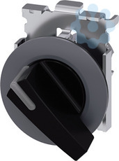 Knebelschalter beleuchtbar, 30 mm, rund, Metall matt, schwarz, Knebel lang, Frontring für flachen Einbau, verrastend, Schaltwinkel 90°, 10:30h/13:30h Knebelschalter SIRIUS ACT zur Schaltung und Steuerung elektrischer Verbraucher.Unter dem Markennamen SIRIUS ACT bietet Siemens ein einzigartiges Portfolio an Befehls- und Meldegeräten mit weltweiten Produkt-Zulassungen in drei modernen Designreihen aus robustem Echtmetall und hochwertigem Kunststoff.Das innovative Aufschnappkonzept vereinfacht die Montage so weit, dass dafür nur eine Hand und kein Spezialwerkzeug erforderlich ist. Als Montagebohrungen genügen nutfreie Löcher, da bereits ein 100%iger Verdrehschutz integriert ist.Dank der durchgängig hohen Schutzart sind die robusten Geräte industrietauglich und für den Außeneinsatz geeignet. Sogar die Reinigung mit Hochdruckstrahl ist möglich. Weder Staub, Öle noch aggressive Laugen können den zuverlässigen Betrieb stören.Neben der Standardverdrahtung können die meisten Geräte auch über PROFINET, AS-Interface oder IO-Link an die Steuerung angebunden werden. Damit reduzieren Sie Ihren Verdrahtungsaufwand, minimieren Fehlerquellen und gewinnen mehr Flexibilität.Komfortabel unterstützt der grafische Online-Konfigurator bei Auswahl und Bestellung von Einzelgeräten, Gehäusen und Beschriftungen. Umfangreiche Dokumentation (z.B. Handbuch, 3D-Daten, Anschlussdiagramm) ist verfügbar.Lieferbare Ausführungen: mehrere Farben, 2-4 Schaltstellungen, kurzer/langer Knebel oder Drehknopf, beleuchtet/unbeleuchtet (Beleuchtung auch nachrüstbar), verrastende/tastende Betätigung.Hinweis: Einzelgerät, Halter und Module bitte extra bestellen.SIRIUS ACT - Performance in Action beim Befehlen und Melden. Einfach montiert, einfach stark, einfach perfekt.