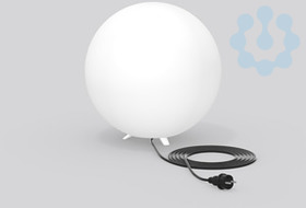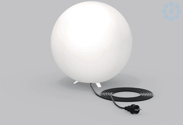 Dekorative Gartenleuchte. Gehäuse Kunststoff mit stabiler Kunststoffkugel (Polyethylen) opal seidenmatt. Halterung mit Standfüßen und separatem Adapter zur Boden- und Erdspießbefestigung. Mit Anschlussleitung 5 m inklusive Schukostecker IP 44. RGB Leuchtmittel und Zubehör für Erdmontage separat bestellen!