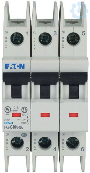Leitungsschutzschalter, FAZ-NA, 3-polig, Auslösecharakteristik: C, Bemessungsstrom In: 40 A, Schaltgeräte für den Export nach Nordamerika (UL zertifiziert)