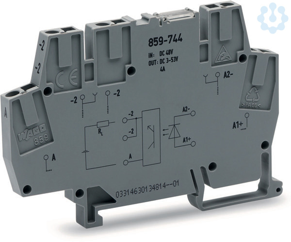 Optokopplermodul; Eingangsnennspannung DC 12 … 48 V; Ausgangsspannungsbereich DC 10 … 53 V; Grenzdauerstrom 4 A; 2-Leiter-Anschluss; 6 mm Baubreite; grau