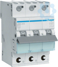 Leitungsschutzschalter 3 polig 6kA B-Charakteristik 13A QuickConnect 3 Module.Leitungsschutzschalter mit QuickConnect-Klemme nach DIN EN 60898-1 (VDE 0641 Teil 11), am Abgang bis 16A und am Zugang für die Verschienung bis 63A, mit zeitverzögertem thermischen Auslöser für Überlastschutz und elektromagnetischem Auslöser für Kurzschlussschutz. Geeignet zum nachträglichen Anbau von Zusatzeinrichtungen. Beschriftungsmöglichkeit direkt am Gerät und Einzelentnahme aus dem Phasenschienenverbund durch Entriegelung der Hutschienenschnellbefestigung.