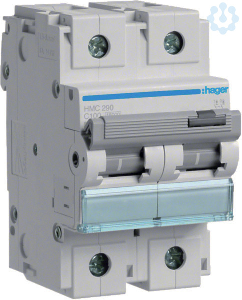 Leitungsschutzschalter 2 polig 15kA C-Charakteristik 100A 3 Module.Leitungsschutzschalter nach IEC 60898-1, DIN EN 60898-1 (VDE 0641-11), IEC 60947-2, DIN EN 60947-2 (VDE 0660-101), mit zeitverzögertem thermischem Auslöser für Überlastschutz und elektromagnetischer Auslöser für Kurzschlussschutz. Anschlussklemme mit Klemmkraftausgleich, Klemmkraftverstärkung und Klemmbacken. Abgangsseitiger Nebenanschluss für Flachstecker. Verriegelungs- und Plombiermöglichkeiten direkt am Knebel. Geeignet zum nachträglichen Anbau von Zusatzeinrichtungen. Beschriftungsmöglichkeit direkt am Gerät und Einzelentnahme aus dem Phasenschienenverbund durch Entriegelung der Hutschienenschnellbefestigung.