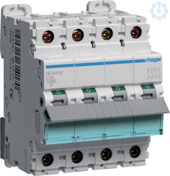 Leitungsschutzschalter 3P+N 10kA/15kA C-16A 4M.Leitungsschutzschalter nach DIN EN 60898-1 (VDE 0641-11) mit zeitverzögertem thermischen Auslöser für Überlastschutz und elektromagnetischer Auslöser für Kurzschlussschutz. Geeignet zum nachträglichen Anbau von Zusatzeinrichtungen. Beschriftungsmöglichkeit direkt am Gerät und Einzelentnahme aus dem Phasenschienenverbund durch Entriegelung der Hutschienenschnellbefestigung.
