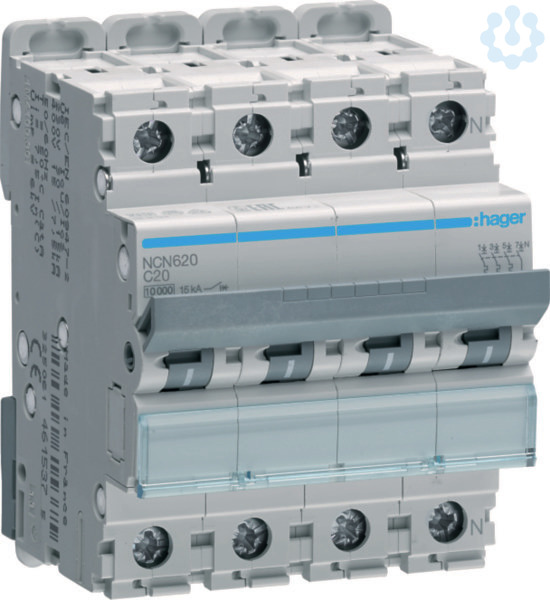 Leitungsschutzschalter 3P+N 10kA/15kA C-20A 4M.Leitungsschutzschalter nach DIN EN 60898-1 (VDE 0641-11) mit zeitverzögertem thermischen Auslöser für Überlastschutz und elektromagnetischer Auslöser für Kurzschlussschutz. Geeignet zum nachträglichen Anbau von Zusatzeinrichtungen. Beschriftungsmöglichkeit direkt am Gerät und Einzelentnahme aus dem Phasenschienenverbund durch Entriegelung der Hutschienenschnellbefestigung.